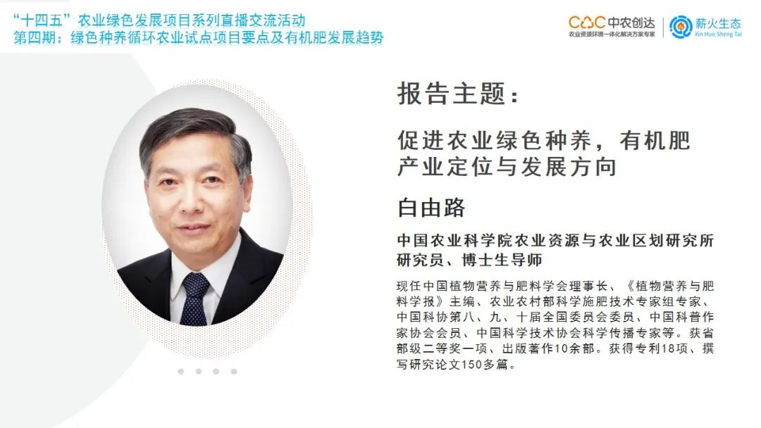 針對(duì)《促進(jìn)農(nóng)業(yè)綠色種養(yǎng),有機(jī)肥產(chǎn)業(yè)定位與發(fā)展方向》,中國農(nóng)業(yè)科學(xué)院農(nóng)業(yè)資源與農(nóng)業(yè)區(qū)劃研究所白由路研究員進(jìn)行了分享。