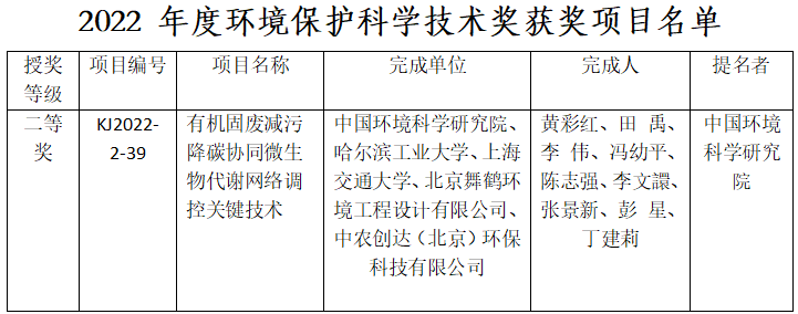 近日,生態環境部發布《2022年度環境保護科學技術獎獲獎項目公告》,由中農創達參與完成的“有機固廢減污降碳協同微生物代謝網絡調控關鍵技術”項目榮獲二等獎。